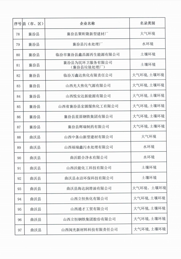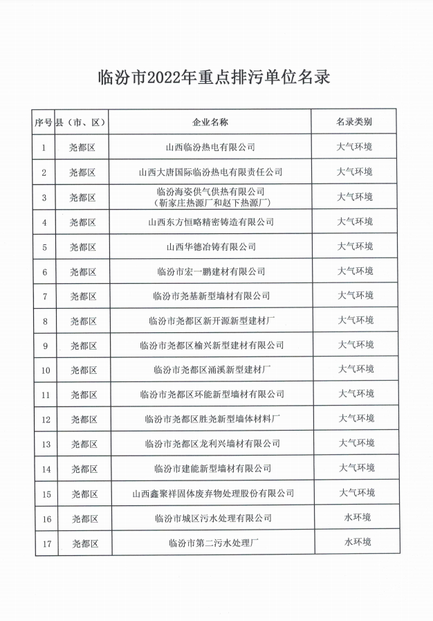 原標題:關(guān)于公布臨汾市2022年重點排污單位名錄的通知