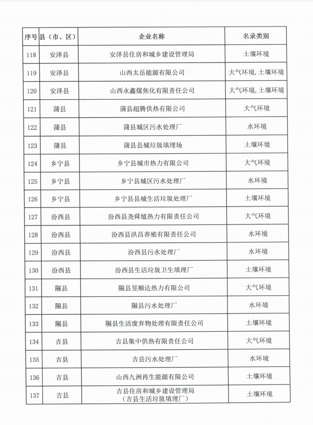 近日,臨汾市生態(tài)環(huán)境局公布了2022年重點排污單位名錄,涉及大氣環(huán)境、水環(huán)境、土壤環(huán)境等重點排污單位共141家。詳情如下: