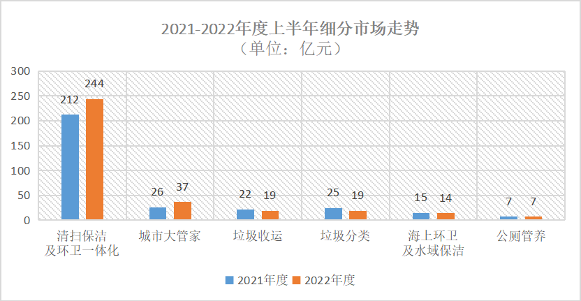 上半年,清掃保潔及環(huán)衛(wèi)一體化、城市大管家政府采購項目均出現(xiàn)一定程度增長,其中:清掃保潔及環(huán)衛(wèi)一體化項目成交年化總額同比增長15%,城市大管家項目成交年化總額同比增長42%。