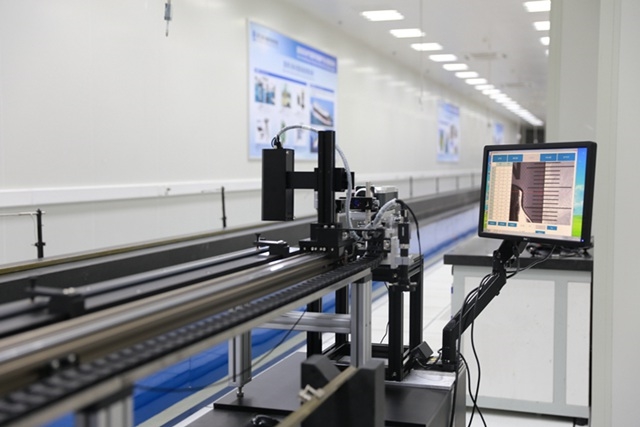 針對油水界面探測儀檢測方法落后問題,國家海洋油氣資源開發(fā)裝備產(chǎn)業(yè)計量中心聯(lián)合舟山市質(zhì)量技術(shù)監(jiān)督檢測研究院組成了專家組,深入開展實地調(diào)查研究。技術(shù)專家陳歡扎根實地,依托在長度精密測量領(lǐng)域的多年技術(shù)經(jīng)驗積累,整合視覺檢測、機電自動化技術(shù),積極攻關(guān),最終研發(fā)一套針對油水界面探測儀的全自動檢測系統(tǒng),實現(xiàn)了測量過程自動化,測量數(shù)據(jù)自動記錄,一鍵生成報告。系統(tǒng)研發(fā)自動測量功能,上位機中選擇油水界面測量儀的規(guī)格,一鍵自動檢測運行,伺服電機帶動機器視覺自動識別模組在高精度導軌上運行,根據(jù)預置點位自動識別圖像中線紋位置,結(jié)合圖像算法和激光干涉儀標準數(shù)據(jù)實現(xiàn)精確檢測;系統(tǒng)研發(fā)檢測數(shù)據(jù)實時自動記錄功能,對于預置點位的數(shù)據(jù),上位機系統(tǒng)通過算法處理獲取準確檢測數(shù)據(jù),并實現(xiàn)軟件中自動記錄功能。系統(tǒng)研發(fā)報告一鍵生成功能,根據(jù)應用實際需求,定制化報告,可一鍵生成導出。檢測系統(tǒng)操作方便,檢測效率高,大幅度縮短油水界面探測儀的檢測時間,助力海洋經(jīng)濟快速發(fā)展。系統(tǒng)服務(wù)于各類檢測機構(gòu)、企業(yè),滿足油水界面探測儀的檢測需求。助力了計量檢測單位、企業(yè)等檢測工作的數(shù)字化、高效化。