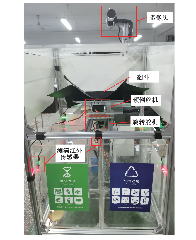 目前智能垃圾箱有多種形式,主要分為聲控方式和視覺方式2類。聲控方式需要投放者對(duì)著垃圾箱說出垃圾的名稱,垃圾箱判定該垃圾所屬類別后打開相應(yīng)垃圾箱,完成投放,如馬浚剛等設(shè)計(jì)了一種基于STM32單片機(jī)的語音識(shí)別智能垃圾箱,利用語音識(shí)別模塊ASR-MO8B、語音播報(bào)模塊WT2003S-16和sG90模擬舵機(jī)實(shí)現(xiàn)垃圾箱的智能化聲音識(shí)別,并且能語音控制對(duì)應(yīng)垃圾箱垃圾蓋的自動(dòng)開閉;趙小芬基于語音識(shí)別算法,并將其應(yīng)用于垃圾分類,開發(fā)了一種軟硬件結(jié)合的嵌入式智能垃圾箱。基于視覺方式主要是采用目標(biāo)檢測(cè)識(shí)別的方法進(jìn)行垃圾識(shí)別和分類,識(shí)別過程主要包括圖像預(yù)處理,特征提取和分類3個(gè)步驟,依據(jù)特征提取方式可分為傳統(tǒng)機(jī)器學(xué)習(xí)方法和深度學(xué)習(xí)方法。傳統(tǒng)機(jī)器學(xué)習(xí)方法是針對(duì)圖像提取其特征并進(jìn)行匹配篩選,確定目標(biāo)種類,如黃浩然對(duì)采集到的垃圾圖像提取Hu不變矩和12個(gè)顏色空間特征作為特征向量,對(duì)比特征向量之間的相似性來確定垃圾種類;黃興華等通過改進(jìn)局部二值模式(LBP)紋理特征算法,結(jié)合梯度方向直方圖(HOG)算法,提出一種新的特征融合方法,并利用支持向量機(jī)(SVM)進(jìn)行垃圾分類識(shí)別; Irfan等采用Haar-Cascade方法檢測(cè)地板上的物體并將灰度共生矩陣(GLCM)和定向梯度直方圖(HOG)結(jié)合起來得到1組特征,利用支持向量機(jī)( SVM)將物體進(jìn)行垃圾分類。深度學(xué)習(xí)法垃圾分類是利用近年來較流行的深度學(xué)習(xí)模型進(jìn)行垃圾識(shí)別,如 Wang等提出的通過使用區(qū)域提議網(wǎng)絡(luò)和 ResNet 網(wǎng)絡(luò)算法訓(xùn)練Faster R-CNN開源框架,再通過 RPN(區(qū)域提議網(wǎng)絡(luò))層得到輸出; Kumar等研究了YOLO v3算法在Darknet神經(jīng)網(wǎng)絡(luò)框架中用于訓(xùn)練自制數(shù)據(jù)集,針對(duì)6種對(duì)象類別(紙板﹑玻璃、金屬、紙張﹑塑料和有機(jī)廢物)進(jìn)行了訓(xùn)練,使用YOLO v3-tiny執(zhí)行了檢測(cè)任務(wù),以驗(yàn)證YOLO v3算法的能力,結(jié)果表明:所提出的YOLO v3方法對(duì)具有一定的泛化能力。還有部分學(xué)者也進(jìn)行了相關(guān)研究。