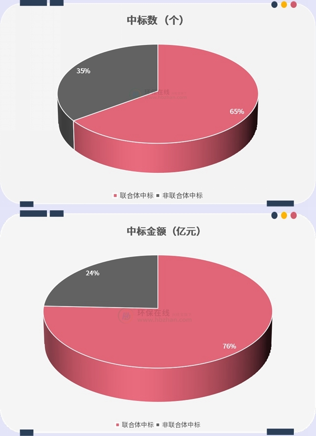 另一個(gè)很明顯的特點(diǎn)是,這些10億級環(huán)保項(xiàng)目的中標(biāo)方多以聯(lián)合體方式出現(xiàn),“設(shè)計(jì)+勘查+建造+運(yùn)營”系列任意組合,地方包攬大標(biāo)也是常規(guī)操作。并且,國資央企“當(dāng)?shù)?rdquo;可謂相當(dāng)明顯了。