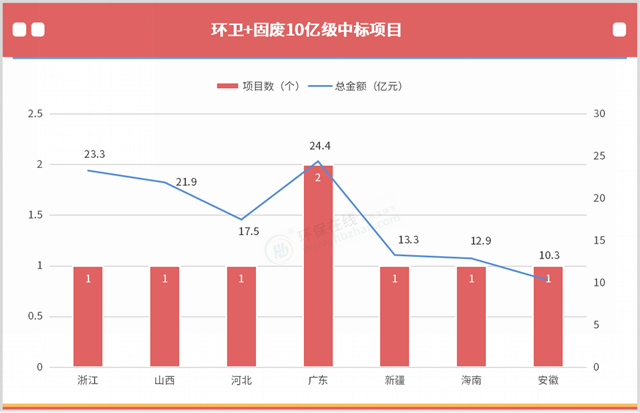 上半年,固廢和環(huán)衛(wèi)中標(biāo)的10億級項(xiàng)目也有18.6%,總金額占比也超過了10%,算得上豐收了。而且,上榜的固廢項(xiàng)目并不再以垃圾焚燒為主,固廢資源化的發(fā)展勢頭還是向好的。