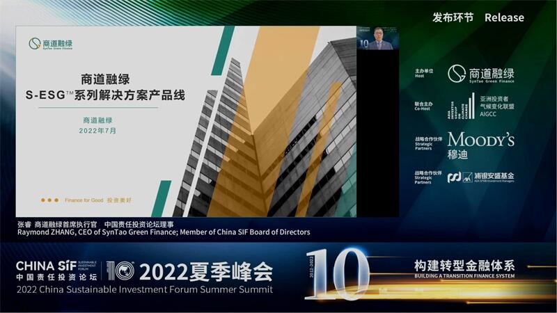 在成果發(fā)布環(huán)節(jié),商道融綠首席執(zhí)行官、China SIF理事張睿介紹展示了商道融綠全新S-ESG系列解決方案。商道融綠基于十三年ESG專業(yè)積累,整合數(shù)千萬ESG基礎(chǔ)數(shù)據(jù)、數(shù)十項(xiàng)ESG模型和算法以及近十個(gè)ESG主題數(shù)據(jù)平臺,推出全新S-ESG系列解決方案,提供商業(yè)銀行、資管業(yè)、保險(xiǎn)業(yè)、證券業(yè)、私募股權(quán)業(yè)、工商企業(yè)、學(xué)術(shù)機(jī)構(gòu)及國際組織等一站式ESG及綠色金融落地解決方案。