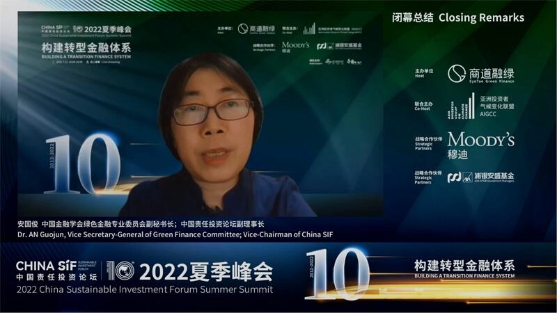最后,中國金融學(xué)會綠色金融專業(yè)委員會副秘書長、China SIF副理事長安國俊博士做了總結(jié)發(fā)言。她指出,要充分發(fā)揮綠色金融和轉(zhuǎn)型金融的作用,首先要加強(qiáng)投資、金融、財(cái)稅等工具創(chuàng)新,激勵(lì)社會資本投入綠色低碳產(chǎn)業(yè)及轉(zhuǎn)型技術(shù)領(lǐng)域;完善綠色金融與綠色財(cái)政、產(chǎn)業(yè)政策協(xié)調(diào)發(fā)展的“1+N”政策體系,推進(jìn)綠色金融、轉(zhuǎn)型金融、可持續(xù)金融、氣候投融資、影響力協(xié)同發(fā)展。引導(dǎo)綠色基金ESG投資、資本向善的趨勢和體系的完善。同時(shí)也要逐步完善與轉(zhuǎn)型金融相關(guān)的行業(yè)標(biāo)準(zhǔn)、風(fēng)險(xiǎn)定價(jià)機(jī)制等“基礎(chǔ)設(shè)施”框架的搭建,培育綠色基金、碳中和基金等綠色投資者,將資管產(chǎn)品創(chuàng)新與社會責(zé)任承擔(dān)有效協(xié)同,為雙碳目標(biāo)構(gòu)建我國綠色金融與轉(zhuǎn)型金融協(xié)同發(fā)展的體系。