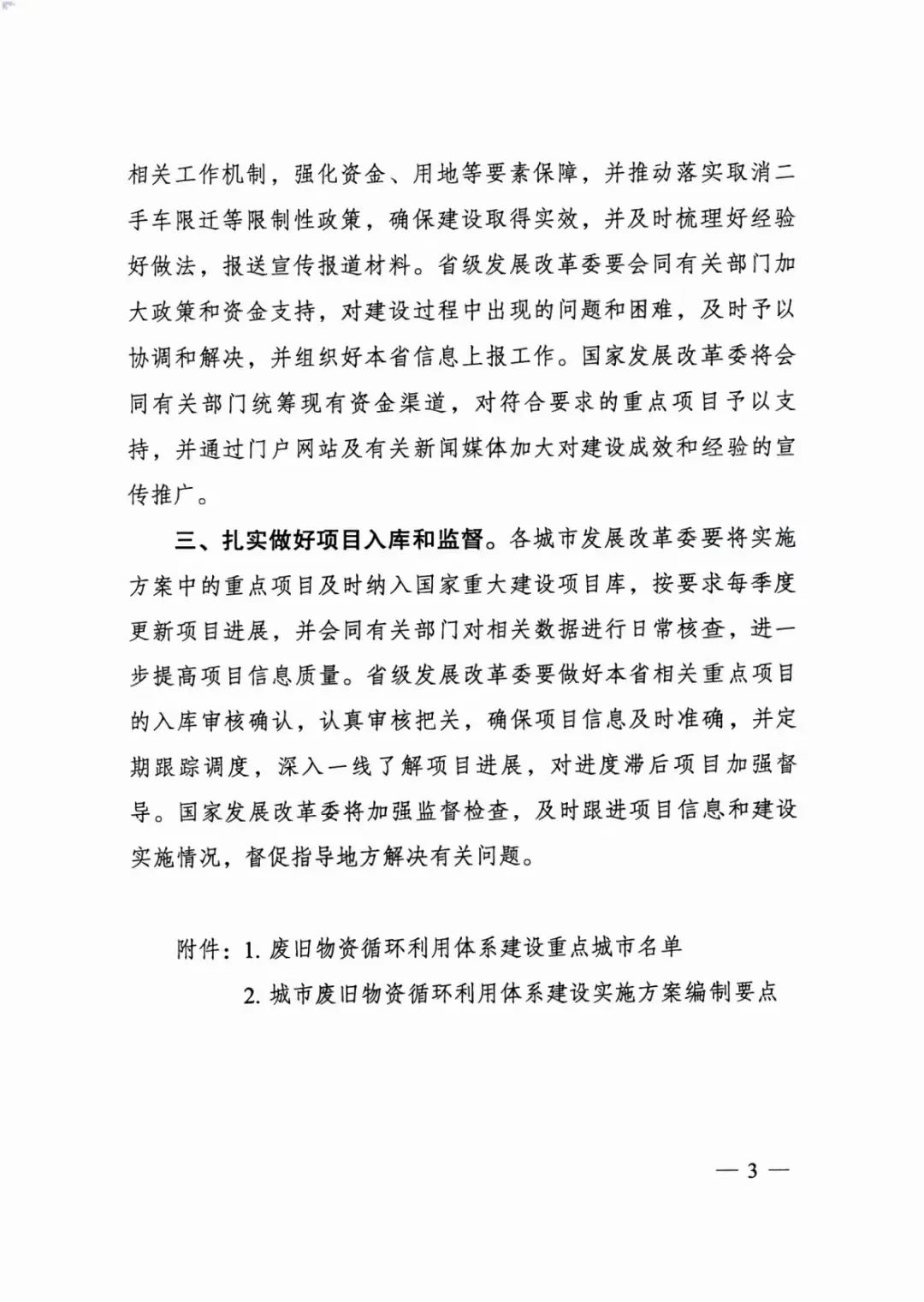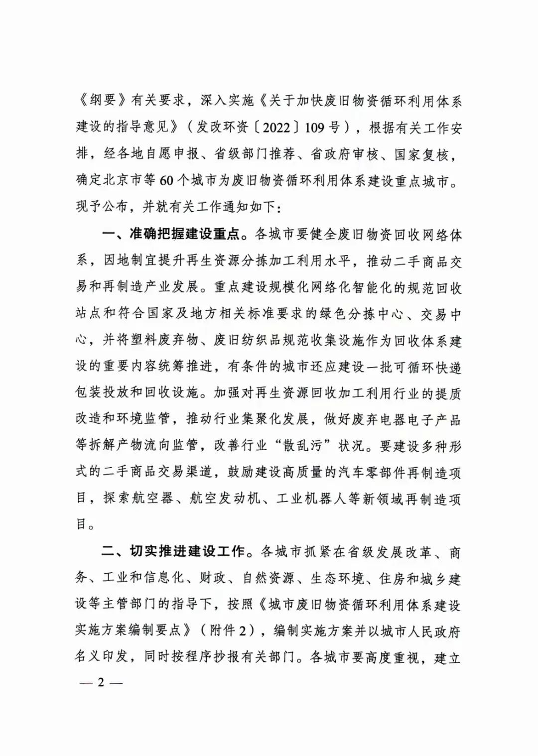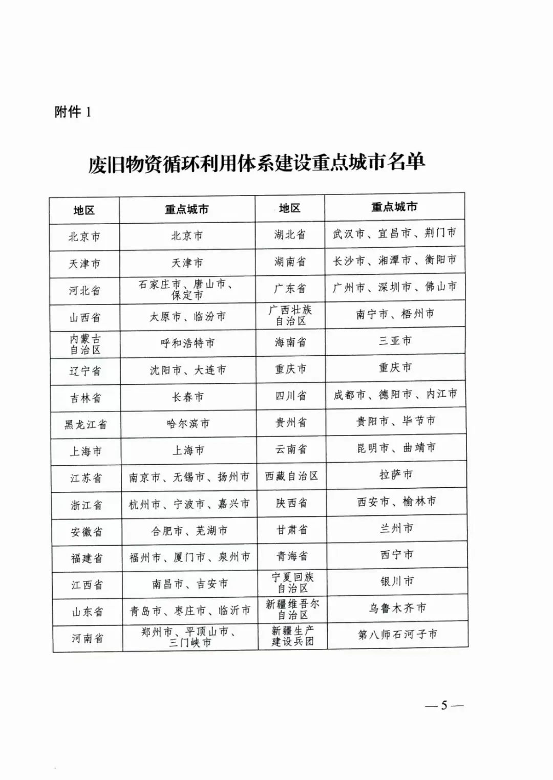 國(guó)家發(fā)展改革委辦公廳等:廢舊物資循環(huán)利用體系建設(shè)重點(diǎn)城市名單的通知