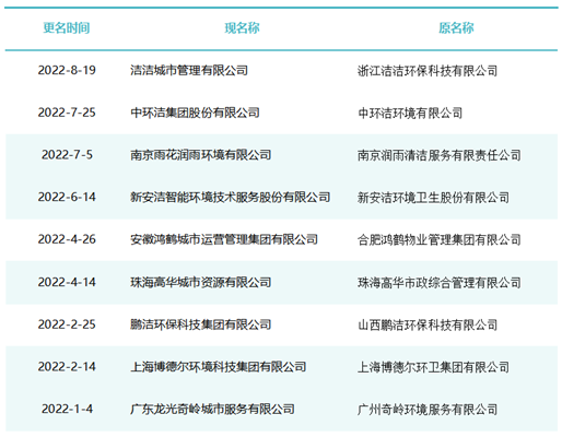 作為玉禾田[300815]最主要的環(huán)衛(wèi)項目投標(biāo)主體,玉禾田物業(yè)清潔公司在名稱上用“智慧城市運(yùn)營”替換“物業(yè)清潔”,則是希望轉(zhuǎn)型邁向智慧城市運(yùn)營商之路。司南君在對近八年的更名規(guī)律進(jìn)行總結(jié)與梳理發(fā)現(xiàn),環(huán)衛(wèi)企業(yè)“更名潮”大概可以分為三個階段。第一波更名潮從2015-2018年。第一波更名潮追求專業(yè)化發(fā)展道路,這個時期的更名熱詞是“環(huán)境服務(wù)”、“環(huán)境科技”、”環(huán)保產(chǎn)業(yè)“、“環(huán)保技術(shù)”,一大批清潔公司、保潔公司、環(huán)衛(wèi)公司、物業(yè)公司更名為“環(huán)境服務(wù)公司”、“環(huán)境科技公司”、”環(huán)保技術(shù)公司“。第二波更名潮從2019年到2021年。第二波更名潮集體轉(zhuǎn)向城市綜合服務(wù)方向。這一時期的更名熱點(diǎn)是“城市管理”、“城市服務(wù)”、“城市管家”、“智慧城市運(yùn)營”、“公共事業(yè)管理”等,用這些熱詞替代“環(huán)保技術(shù)”、“環(huán)衛(wèi)服務(wù)”、“環(huán)境科技”、“環(huán)境服務(wù)”等傳統(tǒng)環(huán)衛(wèi)詞匯。進(jìn)入2022年度,環(huán)衛(wèi)企業(yè)迎來第三波更名潮。今后一定時期,環(huán)衛(wèi)行業(yè)的發(fā)展將面臨多重挑戰(zhàn),環(huán)衛(wèi)企業(yè)更名也將更富多元化,因此企業(yè)更名也必將根據(jù)每家公司對行業(yè)發(fā)展的理解認(rèn)識及自身戰(zhàn)略定位而各有側(cè)重。2015年到2018年是環(huán)衛(wèi)市場化第一波大發(fā)展時期。圖表1:2018年度更名“百強(qiáng)企業(yè)”這期間,環(huán)衛(wèi)市場化大閘初步敞開,PPP模式引入環(huán)衛(wèi)領(lǐng)域,城鄉(xiāng)環(huán)衛(wèi)一體化模式如火如荼,年化額超千萬元、合同額超億元的環(huán)衛(wèi)大標(biāo)開始批量出現(xiàn),傳統(tǒng)物業(yè)清潔企業(yè)、非環(huán)衛(wèi)類物業(yè)公司大量涌入環(huán)衛(wèi)行業(yè)。圖表2:2017年度更名“百強(qiáng)企業(yè)”因此,環(huán)衛(wèi)企業(yè)第一波更名潮追求專業(yè)化發(fā)展道路,這個時期的更名熱詞是“環(huán)境服務(wù)”、“環(huán)境科技”、”環(huán)保產(chǎn)業(yè)“、“環(huán)保技術(shù)”,一大批清潔公司、保潔公司、環(huán)衛(wèi)公司、物業(yè)公司更名為“環(huán)境服務(wù)公司”、“環(huán)境科技公司”、”環(huán)保技術(shù)公司“。圖表3:2016年度更名“百強(qiáng)企業(yè)”圖表4:2015年度更名“百強(qiáng)企業(yè)”這期間有近40家百強(qiáng)企業(yè)或日后發(fā)展成百強(qiáng)企業(yè)的環(huán)衛(wèi)公司完成了更名,如福建東飛環(huán)境集團(tuán)有限公司、濱南生態(tài)環(huán)境集團(tuán)股份有限公司、北京慧豐清軒環(huán)境科技集團(tuán)有限公司、河北人和環(huán)境科技有限公司、浙江波普環(huán)境服務(wù)有限公司、深圳市陽光三環(huán)生態(tài)環(huán)境股份有限公司、深圳世路源環(huán)境有限公司(深兄環(huán)境)、廣東美保環(huán)境技術(shù)有限公司、泓欣環(huán)境集團(tuán)有限公司等。第二波:從“環(huán)衛(wèi)服務(wù)”到“城市管家”2019年到2021年是“環(huán)衛(wèi)市場化”高潮向“城市大管家模式”的轉(zhuǎn)型期初期。圖表5:2021年度更名“百強(qiáng)企業(yè)”這期間,環(huán)衛(wèi)市場化從大發(fā)展走向大高潮,城市精細(xì)化管理從“理念”走向“實踐”,各路國有物業(yè)公司積極推動城市大管家模式,大批頭部物管企業(yè)通過大并購等方式搶灘環(huán)衛(wèi)及城市服務(wù)市場。圖表6:2020年度更名“百強(qiáng)企業(yè)”由此,順應(yīng)時代大潮,環(huán)衛(wèi)企業(yè)第二波更名潮集體轉(zhuǎn)向城市綜合服務(wù)方向。這一時期的更名熱點(diǎn)是“城市管理”、“城市服務(wù)”、“城市管家”、“智慧城市運(yùn)營”、“公共事業(yè)管理”等,用這些熱詞替代“環(huán)保技術(shù)”、“環(huán)衛(wèi)服務(wù)”、“環(huán)境科技”、“環(huán)境服務(wù)”等傳統(tǒng)環(huán)衛(wèi)詞匯。圖表7:2019年度更名“百強(qiáng)企業(yè)”這期間有40余家知名環(huán)衛(wèi)企業(yè)完成了更名,如僑銀城市管理股份有限公司、北控城市環(huán)境服務(wù)集團(tuán)有限公司、深圳玉禾田智慧城市運(yùn)營集團(tuán)有限公司、深圳市鑫梓潤智慧城市管家股份有限公司、康潔科技集團(tuán)有限公司、西安高科城市服務(wù)管理有限責(zé)任公司、溫州市鹿城區(qū)城市管理服務(wù)有限公司、廣東路通公用事業(yè)管理集團(tuán)有限公司、深圳市金陽盛城市服務(wù)集團(tuán)有限公司。第三波:多重挑戰(zhàn)并存轉(zhuǎn)型期進(jìn)入2022年度,環(huán)衛(wèi)企業(yè)迎來第三波更名潮。這一時期也將是城市管家模式完成第一輪測試后的大發(fā)展時期。圖表8:2022年度更名“百強(qiáng)企業(yè)”(截止2022年8月份)今后一定時期,環(huán)衛(wèi)行業(yè)的發(fā)展將面臨多重挑戰(zhàn):(一)以電動環(huán)衛(wèi)車、氫能環(huán)衛(wèi)車等為代表的“新能源化”;(二)以智慧環(huán)衛(wèi)與無人操作環(huán)衛(wèi)裝備為代表的“智能化”;(三)以城市大管家為代表的城市管理“精細(xì)化”;(四)以智慧市政