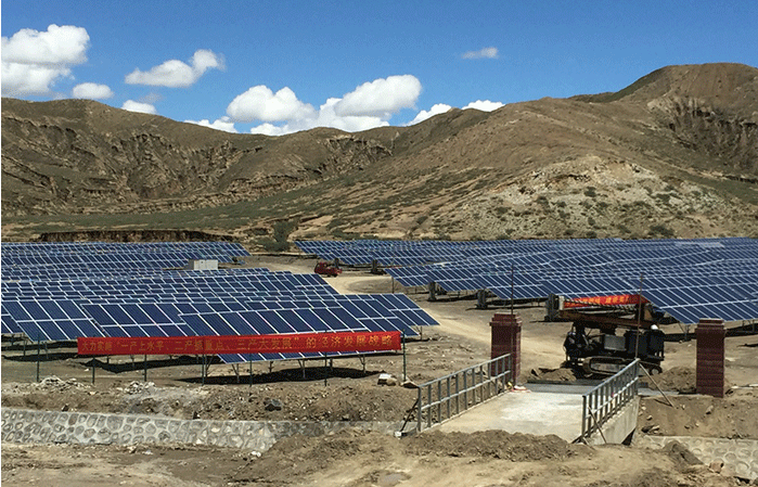 2017年6月,在西藏桑珠孜區(qū),一排排光伏發(fā)電板佇立在山腳下,向陽而立,閃閃發(fā)光,十分壯觀。該光伏電站裝機(jī)容量30MW,占地面積900余畝,昔日垃圾場搖身一變成了光伏發(fā)電基地。