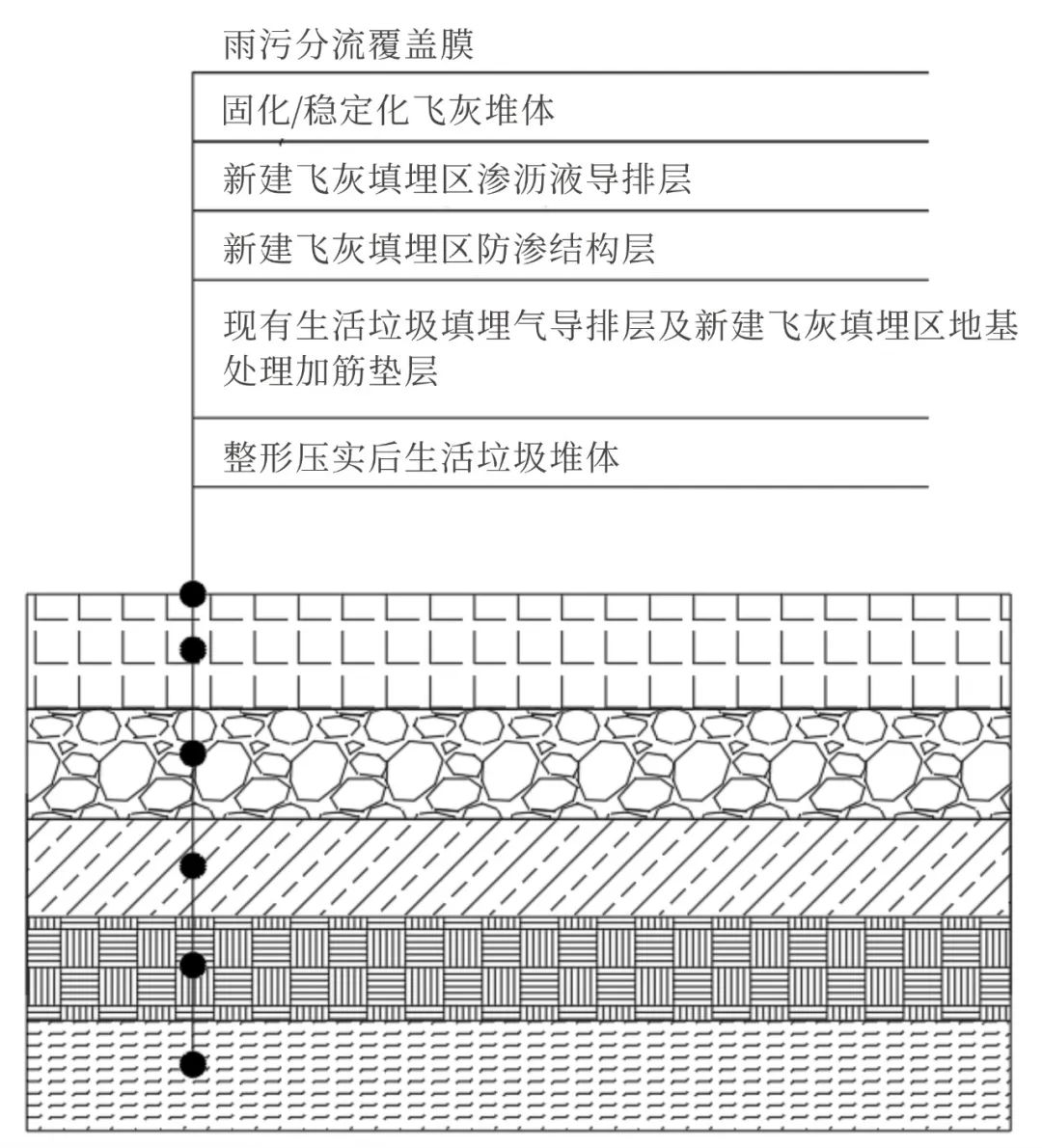 ▲圖2 生活垃圾填埋場(chǎng)改造前現(xiàn)場(chǎng)情況根據(jù)《生活垃圾填埋場(chǎng)污染控制標(biāo)準(zhǔn)》(GB 16889-2008)等相關(guān)標(biāo)準(zhǔn)要求,經(jīng)處理合格滿足入場(chǎng)條件的生活垃圾焚燒飛灰在生活垃圾填埋場(chǎng)中應(yīng)單獨(dú)分區(qū)填埋。固化/穩(wěn)定化飛灰當(dāng)長(zhǎng)期在生活垃圾產(chǎn)生的酸性滲瀝液浸泡下具有滲出有害物質(zhì)的潛在風(fēng)險(xiǎn),故要求分區(qū)填埋。通過(guò)方案比選,異地處置和水平分區(qū)由于需要大規(guī)模的開挖、臭氣等環(huán)境影響更大、工程建設(shè)周期長(zhǎng)、投資較高等較難實(shí)施,故本項(xiàng)目確定采用原位治理的垂直分區(qū)方案。固化/穩(wěn)定化飛灰與生活垃圾性質(zhì)完全不同,其密度大于生活垃圾,此外,生活垃圾堆體通常會(huì)隨著時(shí)間的推移發(fā)生沉降,并繼續(xù)產(chǎn)生填埋氣和滲瀝液,因此,如何確保固化/穩(wěn)定化飛灰入場(chǎng)填埋后填埋場(chǎng)的穩(wěn)定安全,是本項(xiàng)目擬解決的關(guān)鍵問(wèn)題。