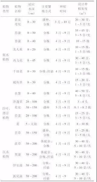 水生植物不同品種能夠適應(yīng)的水位有差別,水位的高低直接影響水生植物能否成活。這就要求,施工者要了解相應(yīng)水生植物的生長(zhǎng)特性, 按照品種的適應(yīng)性以及設(shè)計(jì)的要求進(jìn)行施工, 嚴(yán)格控制好水位。一般挺水植物適宜水深范圍為0cm~40cm;浮葉植物適宜水深范圍為20 cm~100cm;漂浮植物通常對(duì)水深沒(méi)有上限要求;沉水植物適宜水深范圍為30cm ~200 cm。如果河道的水位大漲大落,此時(shí)盡量選用植株高大、耐淹、有一定耐旱性的品種。