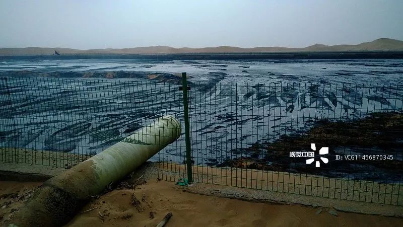 騰格里沙漠腹地現(xiàn)巨型排污池 黑色管道插入沙中散發(fā)惡臭/ 視覺中國