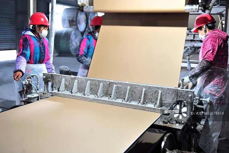 宜昌市鴉鵲嶺鎮(zhèn)精細(xì)化工園區(qū)工人在磷化工廢渣循環(huán)利用生產(chǎn)線上加工制作石膏面板/ 視覺中國