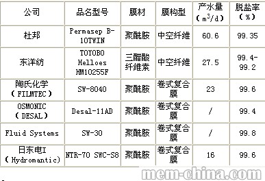 世界各生產(chǎn)膜組件的公司仍十分重視RO膜與組件的技術(shù)創(chuàng)新,目的在于開發(fā)抗氧化、耐細(xì)菌侵蝕的新膜提高膜與組件的產(chǎn)水量、脫鹽率等。這些工作已取得一定的進(jìn)展,如美國(guó)DOW公司推出 FILMTEC BW30LE-440膜元件,在約1.05MPa壓力下,產(chǎn)水量43.5m3/d,脫鹽率大于99%,一個(gè)新元件幾乎相當(dāng)換代前的兩倍。Fluid Systems公司推出 Premium TFC新元件,其苦咸水和海水膜元件的脫鹽率分別高達(dá)99.7%和99.8%。日本的東麗公司和日東電工公司己開發(fā)出可耐9.0MPa的海水淡化膜,并己在西班牙建造了回收率高在60%的兩段RO海淡化裝置。