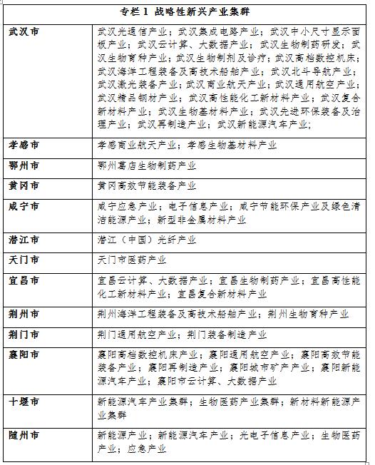全面推進(jìn)“一主兩副多極”城市帶動(dòng)戰(zhàn)略,發(fā)揮武漢、襄陽、宜昌等中心城市產(chǎn)業(yè)優(yōu)勢(shì)和輻射帶動(dòng)作用,以國家級(jí)、省級(jí)開發(fā)區(qū)為主要載體,完善區(qū)內(nèi)和區(qū)外的產(chǎn)業(yè)鏈,建設(shè)世界級(jí)汽車、電子信息、工程設(shè)計(jì)施工產(chǎn)業(yè)集群,打造主導(dǎo)產(chǎn)業(yè)特色突出、優(yōu)勢(shì)明顯的長江現(xiàn)代產(chǎn)業(yè)集聚帶。