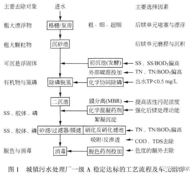 2 一級(jí)A穩(wěn)定達(dá)標(biāo)的工藝單元選擇