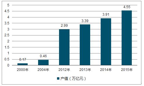 2000-2015年中國環(huán)保行業(yè)產值情況