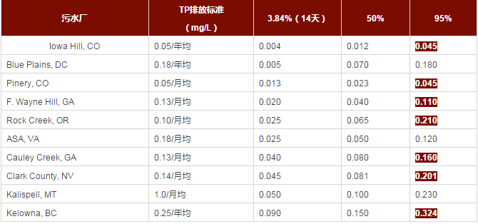 技術(shù)可達(dá)到的可靠標(biāo)準(zhǔn):可靠性是基于第95百分位的統(tǒng)計(jì)計(jì)算,主要是考慮到美國(guó)的很多污水處理廠的排放標(biāo)準(zhǔn)是用月均值,也就是如果在連續(xù)5年的運(yùn)行中,超標(biāo)的月均值可以有3次,這樣的結(jié)果通常被認(rèn)為技術(shù)是可靠的。