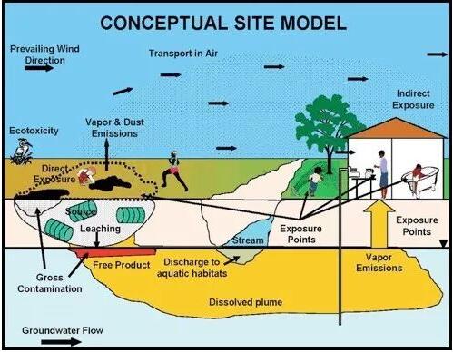 場(chǎng)地調(diào)查是從各種來源收集特定場(chǎng)地的信息和數(shù)據(jù)以表征受污染場(chǎng)地的物理,生物和化學(xué)系統(tǒng)。場(chǎng)地概念模型(CSM)是綜合了所有場(chǎng)地的歷史信息,水文地質(zhì)特征,現(xiàn)場(chǎng)及環(huán)境受體的調(diào)查集成的一個(gè)三維的場(chǎng)地圖,用以說明污染物分布,污染釋放機(jī)制,遷移途徑,暴露途徑和潛在受體。