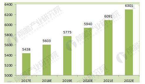 圖表4:2017-2022年廢紙回收利用規(guī)模預(yù)測(cè)(單位:萬噸)