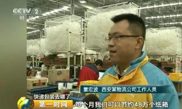 西安某物流公司工作人員 雷宏波:每個(gè)月我們可以節(jié)約48萬(wàn)個(gè)紙箱,按照一個(gè)紙箱按照0.1公斤算的話,我們每個(gè)月可以節(jié)約48噸的紙箱垃圾。