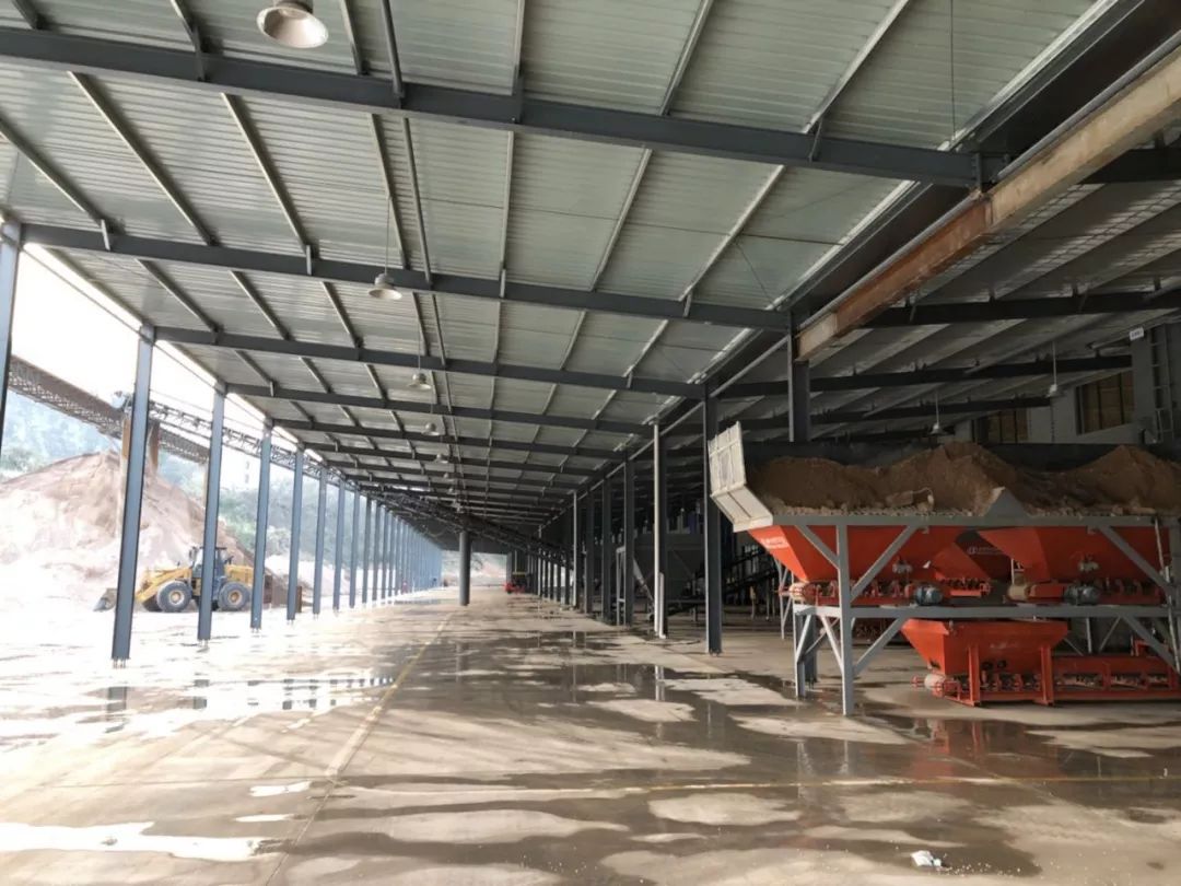 在這個工廠里,可以看到廠區(qū)內(nèi)有一個大型的建筑垃圾處理堆場,建筑垃圾堆積成山。鏟車來回忙碌著,將各類建筑垃圾搬運至垃圾破碎機里粉碎,分離后的材料從不同的傳輸帶里送到封閉車間處理。