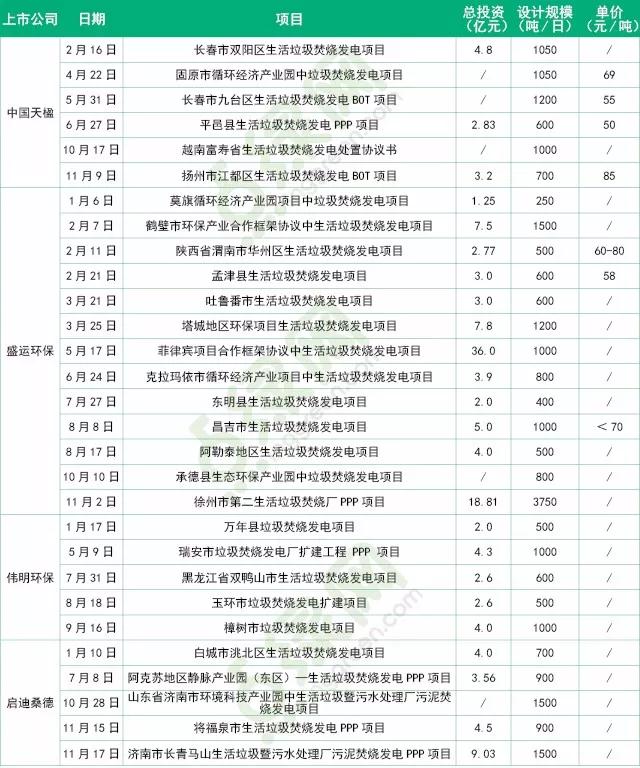 2月21日中標(biāo)的河南省孟津縣生活垃圾焚燒發(fā)電項目中,垃圾處理補(bǔ)貼費(fèi)58元/噸,垃圾保底量為350噸/日,若當(dāng)月運(yùn)送日均垃圾量低于保底量時,按保底量結(jié)算垃圾處理補(bǔ)貼費(fèi)。