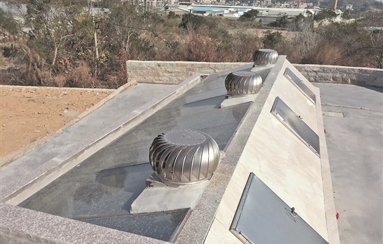 堆肥房屋頂由透明的太陽能采光板拼接而成