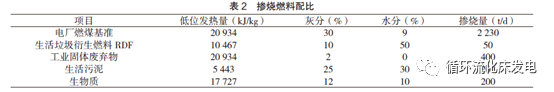利用電廠目前運(yùn)行的2臺(tái)1025t/hCFB循環(huán)流化床鍋爐機(jī)組實(shí)現(xiàn)日摻燒生物質(zhì)200t,處理工業(yè)固廢400t、RDF50t、污泥200t是可行的,可以達(dá)到生物質(zhì)摻燒及城市固廢處置無害化和資源化的目的。