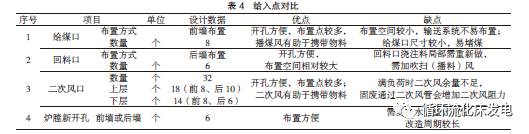 固廢給入點(diǎn)有以下4種:給煤口、二次風(fēng)口、回料口、爐膛新開孔,其優(yōu)缺點(diǎn)如表4所示。對(duì)比以上幾個(gè)給入點(diǎn)優(yōu)缺點(diǎn)可見,選擇回料口作為固廢給入點(diǎn)較為合適。