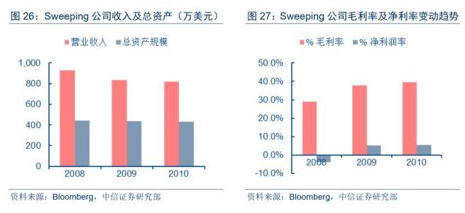 專注于清掃業(yè)務(wù)的SweepingCorporationofAmerica服務(wù)范圍包括美國八個州,業(yè)務(wù)涵蓋市郡街道清掃、國道和州際清掃、道路施工清掃、工業(yè)&制造設(shè)施清掃、商業(yè)和住宅清掃等領(lǐng)域,每個月清掃里程約25,000英里,客戶名單包括國家交通運輸部門、市郡公共工程部門、大型工業(yè)設(shè)施公司和建筑公司等。截至2010年,公司總資產(chǎn)僅為430萬美元,2008~2010年的收入分別為930、830、820萬美元,毛利分別為270、310、320萬美元,與2016年收入高達136億美元的固廢處理龍頭公司W(wǎng)asteManagement相比,體量明顯不在一個數(shù)量級,美國垃圾清掃市場規(guī)模明顯較小。