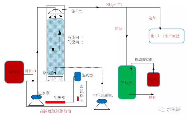 因此,研究人員將污水氮回收的視野轉向氣態(tài)回收,即,形成NH3后去生產氮肥,以減少工業(yè)合成氨的成本。其中,最具代表性的技術就是氨氮吹脫法。
