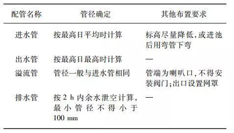 表 1 清水池各配管布置要求