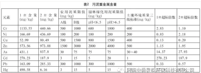 從表2可以看到脫硫污泥中含有Cr、Ni、Cu、Zn、As、Cd、Pb、Hg等重金屬元素。而且我們可以看出1#污泥樣品中檢測的Cr、Ni、Cu、Zn、As、Cd、Pb、Hg8種重金屬中有5種重金屬Cr、Zn、As、Cd、Hg超標,2#污泥樣品有6種重金屬Cr、Ni、Zn、As、Cd、Hg超標。其中的As、Cd、Hg的超標倍數(shù)非常大,已經(jīng)大大超出農(nóng)用污泥的標準限值,如果不加處理,直接排放,會對環(huán)境污染造成很大的危害,所以必須對污泥進行重金屬處理,降低環(huán)境危害性。