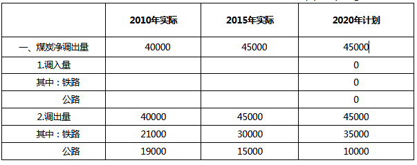 表2—2 2010-2020年鄂爾多斯市內(nèi)、外煤炭需求預測