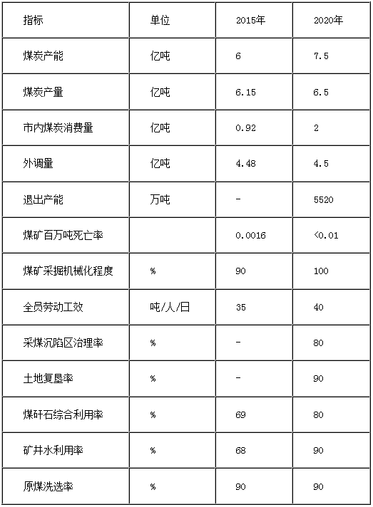 表3—1 “十三五”時期煤炭工業(yè)主要發(fā)展目標