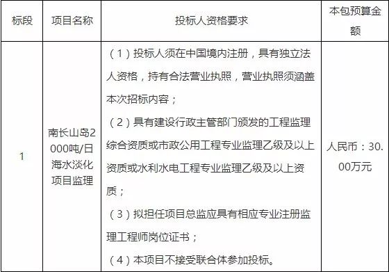 一、采購(gòu)項(xiàng)目名稱:南長(zhǎng)山島2000噸/日海水淡化項(xiàng)目監(jiān)理