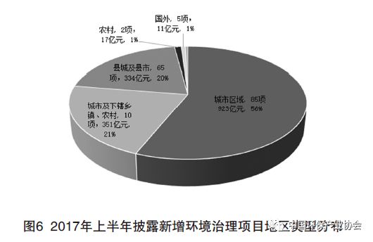 PPP模式做為我國新型城鎮(zhèn)化建設(shè)的重要工具,一方面為社會資本參與城鎮(zhèn)環(huán)境治理提供了渠道,另一方面解決了中小城鎮(zhèn)政府財(cái)政支付能力不足的問題,成為目前中小城鎮(zhèn)實(shí)施環(huán)境治理項(xiàng)目的主要模式。2017年上半年65個(gè)中小城鎮(zhèn)環(huán)保項(xiàng)目中,36個(gè)為PPP模式項(xiàng)目,總投資285億元,投資額占比達(dá)80%。除流域治理等綜合服務(wù)項(xiàng)目外,許多污水處理廠、垃圾焚燒發(fā)電項(xiàng)目等單體項(xiàng)目也普遍采用了PPP模式(見圖6)。