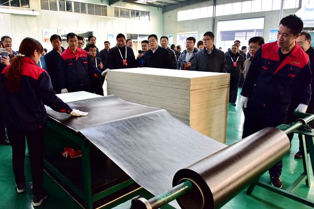 2017年11月22日, 在環(huán)保部召開的京津冀“散亂污”企業(yè)整治現(xiàn)場會上,與會者參觀文安縣大地木業(yè)公司。攝影/章軻