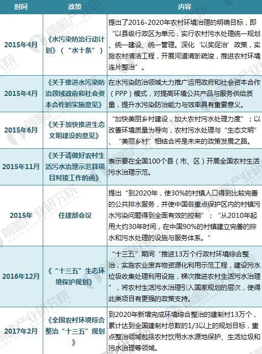 2015之后為快速發(fā)展階段,該階段的特點為政策及機制完善、大力推進和區(qū)域綜合服務(wù)。2016年以來,黨中央治理農(nóng)村污水的決心進一步加強,甚至將農(nóng)村污水治理納入國家規(guī)劃層次。