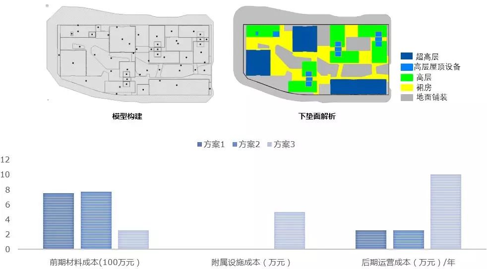結(jié)合上述三個優(yōu)化方案,結(jié)合《海綿城市建設(shè)技術(shù)指南——低影響開發(fā)雨水系統(tǒng)構(gòu)建》以及相關(guān)項目經(jīng)驗,確定各項海綿設(shè)施單價,分別估算上述三個優(yōu)化方案地塊海綿建設(shè)投資成本就比運行成本,評估其技術(shù)經(jīng)濟性,估算結(jié)果見下表: