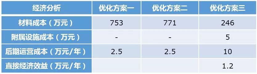 注:①優(yōu)化方案一以及優(yōu)化方案二海綿材料成本中,該成本為海綿設(shè)施總投資成本,未扣除原本就需要硬化鋪裝的費用;其中,透水鋪裝所占投資額較大,為480萬元。