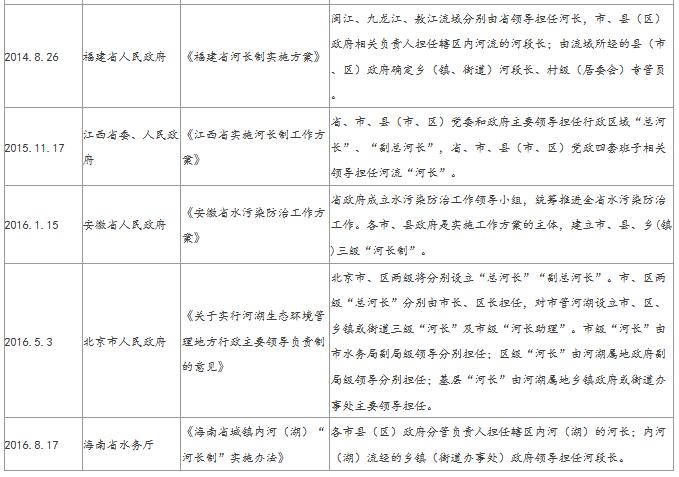 2016年12月14日,水利部、環(huán)保部,發(fā)布《關(guān)于全面推行河長(zhǎng)制的意見》實(shí)施方案,具體工作包括:確定河湖分級(jí)名錄、明確河長(zhǎng)制辦公室、細(xì)化主要任務(wù)、強(qiáng)化分類指導(dǎo)、明確工作進(jìn)度。