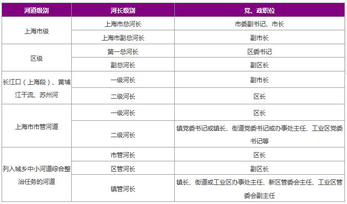 表4:上海市“河長(zhǎng)制”方案中,河長(zhǎng)及其黨政級(jí)別對(duì)應(yīng)情況