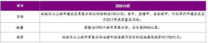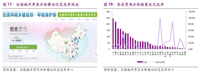 根據(jù)《“十三五”全國(guó)城鎮(zhèn)污水處理及再生利用設(shè)施建設(shè)規(guī)劃》,“十三五”期間,需整治1992個(gè)城市黑臭水體,總長(zhǎng)度5904公里。地級(jí)及以上城市黑臭水體治理中控源截污涉及的設(shè)施建設(shè)投資約1700億元。