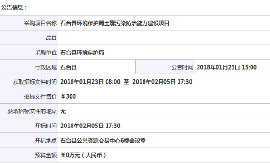安徽省池州市石臺縣發(fā)布環(huán)境保護局土壤污染防治能力建設項目STZF2017191A招標公告,以下是全文: