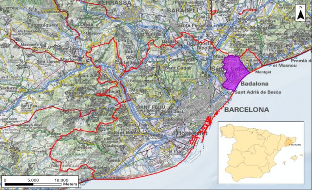 巴達(dá)洛納位于西班牙東北部,巴索斯(Besò)河口,臨地中海,是全國最大工業(yè)中心巴塞羅那的東北部衛(wèi)星城市 (圖8),擁有21.2平方公里土地和約22萬人口。