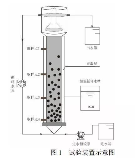 試驗(yàn)采用小試規(guī)模厭氧顆粒污泥膨脹床反應(yīng)器(expanded granular sludge bed, EGSB),由有機(jī)玻璃制作,有效容積為0.8 L,外覆錫紙以隔絕光的影響。反應(yīng)器運(yùn)行溫度通過(guò)恒溫循環(huán)水槽維持在35 ℃,進(jìn)水pH值用0.1 mmol/L鹽酸調(diào)節(jié)為6.6~6.8,以保證Fe(Ⅲ)的溶解;本試驗(yàn)采用連續(xù)流,水力停留時(shí)間(HRT)為24 h,試驗(yàn)裝置如圖1所示。