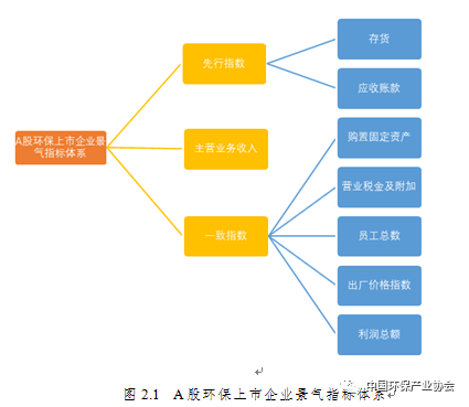 A股環(huán)保上市企業(yè)景氣指數(shù)的一致合成指數(shù)集合包括:購置固定資產(chǎn)、營業(yè)稅金及附加、員工總數(shù)、出廠價(jià)格指數(shù)、利潤總額五項(xiàng)指標(biāo);先行合成指數(shù)集合包括:應(yīng)收賬款、存貨兩項(xiàng)指標(biāo)。A股環(huán)保上市企業(yè)景氣指標(biāo)體系如圖2.1所示。