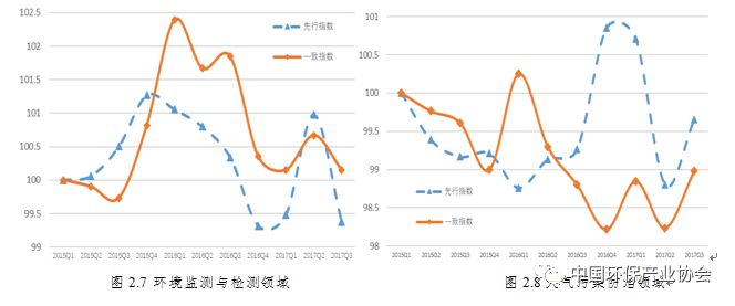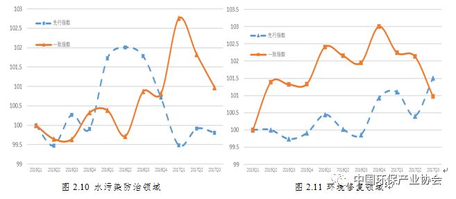 先行指數(shù)顯示,環(huán)境修復(fù)、大氣污染防治、固廢處理與資源化三領(lǐng)域下季度景氣有望向好;水污染防治、環(huán)境監(jiān)測與檢測兩領(lǐng)域下季度景氣或?qū)⑾禄?見圖2.10、圖2.11、圖2.12、圖2.13、圖2.14)。
