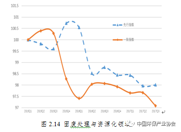 先行指數(shù)顯示,A股環(huán)保上市企業(yè)2017年4季度景氣表現(xiàn)或?qū)⒒芈洌鳡I環(huán)保上市企業(yè)下季度的景氣表現(xiàn)尚不明朗(見圖2.3、圖2.4)。